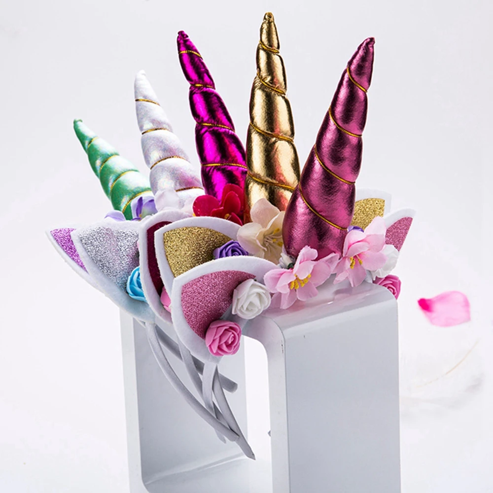 Новые милые повязки на голову с изображением единорога и кошачьих ушей для девочек; Детские головные уборы; Реквизит для фотографий; Вечерние обручи для волос; Детские аксессуары для волос