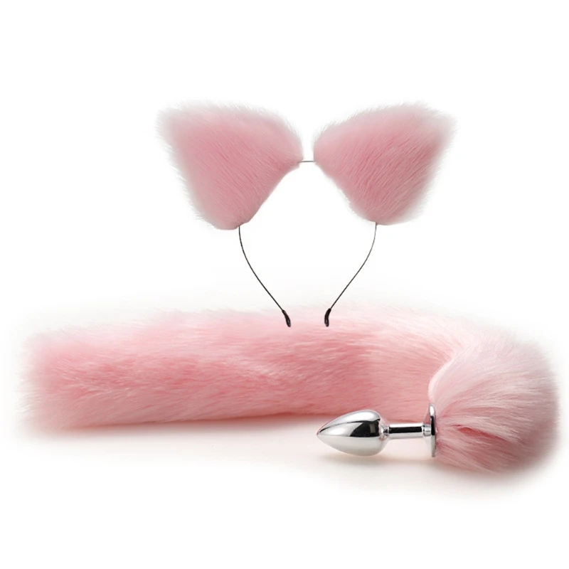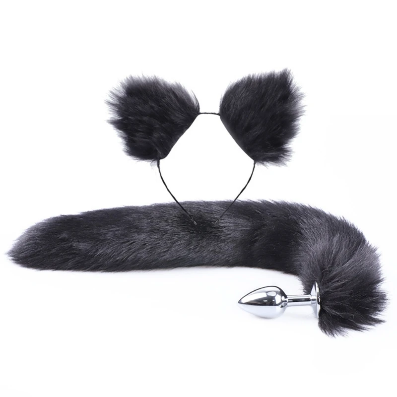 Плюшевый хвост животного, металлическая Анальная пробка, повязка на голову с кошачьими ушками, аксессуары для волос для женщин, косплей, искусственная игра для взрослых