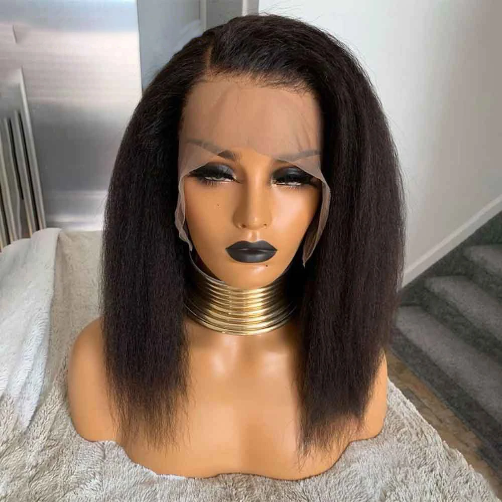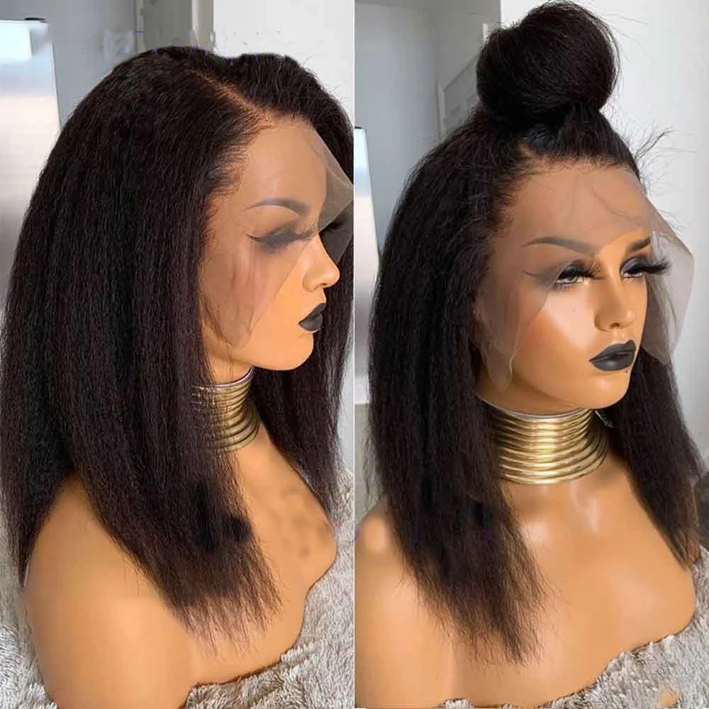 Синтетические кружевные передние короткие стрижки Yaki, парики боб для чернокожих женщин с кудрявыми волосами, прямые, предварительно выщипанные, синтетические кружевные аниме парики