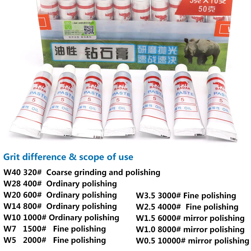 12 шт Алмазный Полировочный диск притирки паста состав шприцы 0,5 ~ 40 микрон Стекло металлический шлифовальный полировальные абразивные инструментыХарактеристика:Растворимость маслаВес: 10 г/шт.Упаковка: 12 шт./лотПодходит для нефрита, часов и часов, зажигалок, ювелирных изделий, металла, ювелирных изделий, таких как высокоточная полировка.Светильник отличается шероховатостью поверхности заготовки, используется различная Полировальная пастаW0.5 является лучшим. W40 является наиболее толстым от грубой до тонкой соответственно используется для шлифования, тонкого шлифования, полировки, тонкой полировки, наконец, может быть зеркальным эффектом.W40 #320 Грубое шлифование и полировкаW28 #400 Обычная полировкаW20 #600 Обычная полировкаW14 #800 Обычная полировкаW10 #1000 Обычная полировкаW7 #1500 тонкая полировкаW5 #2000 тонкая полировкаW3.5 #3000 тонкая полировкаW2.5 #4000 тонкая полировкаW1.5 #6000 зеркальная полировкаW1.0 #8000 зеркальная полировкаW0.5 #10000 зеркальная полировкаПродукты с уникальными характеристиками, низким потреблением, сильной силой резания, светильник, быстрая и хорошая отделка