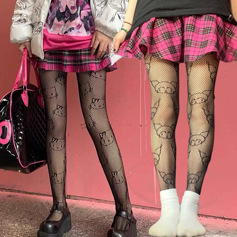 Кавайные Колготки с рисунком мультяшного кота и татуировками, женское сексуальное Сетчатое Прозрачное нижнее белье, эластичные чулки в сеточку, аниме, косплей, чулки