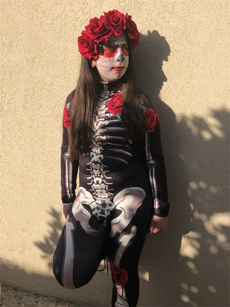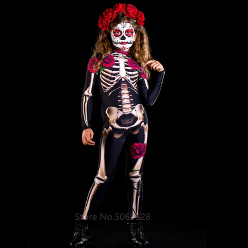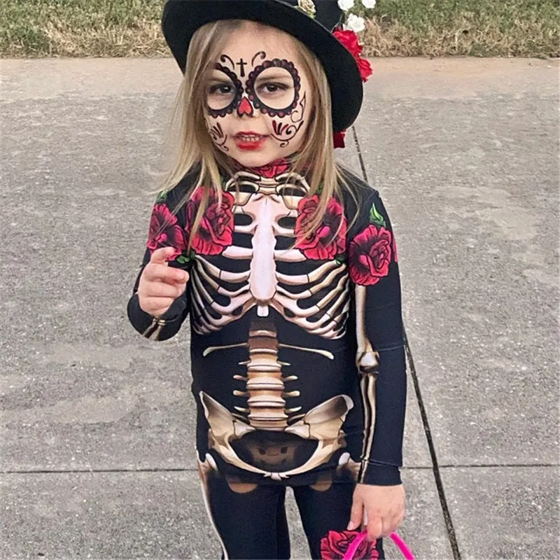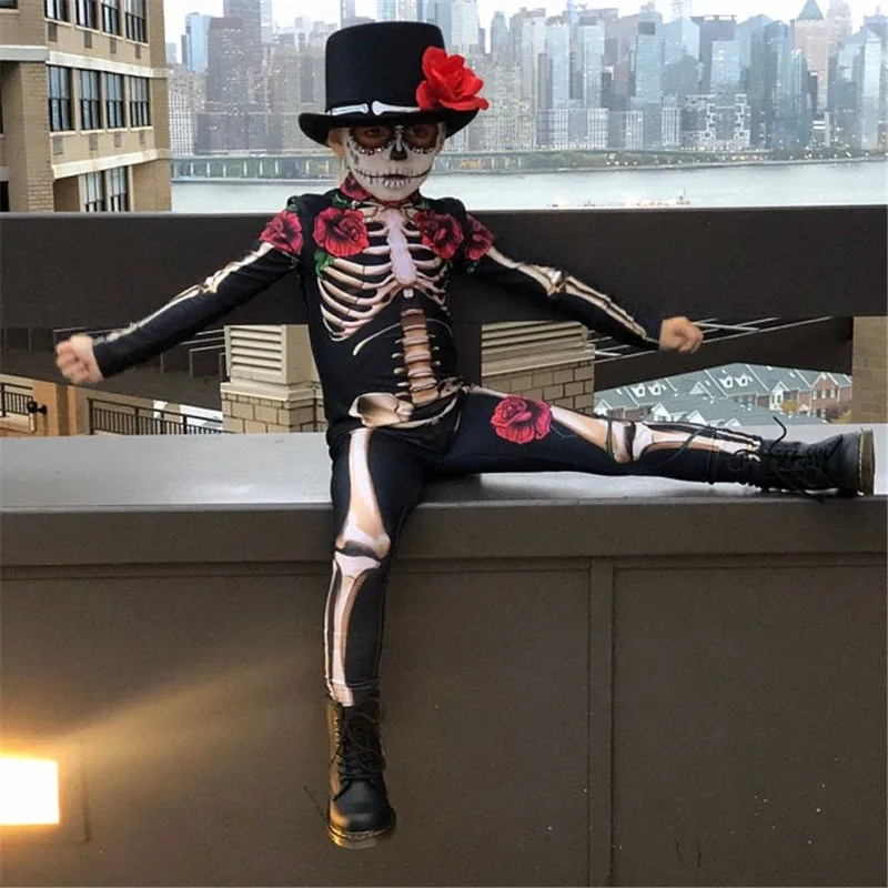 Детский комбинезон Cosplay2022 для Хэллоуина, ужасов, черепа, розы, цветов, скелета, новый модный Детский комбинезон для вечеринки, карнавала