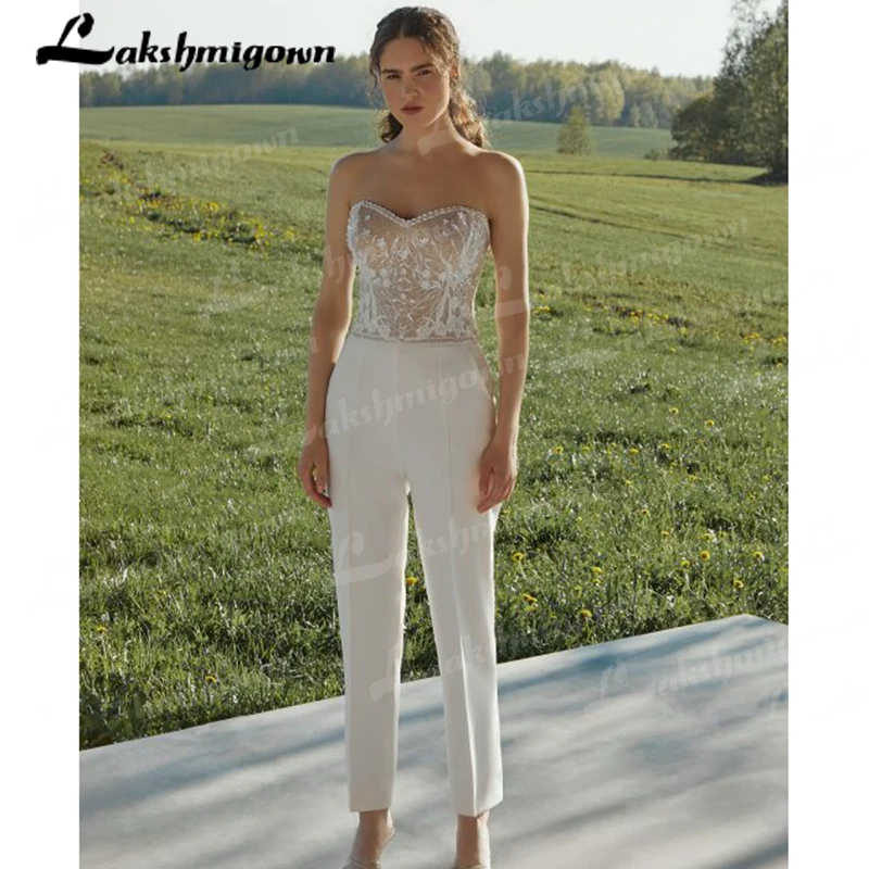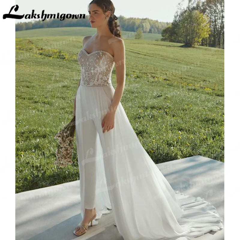 Комбинезоны, свадебные платья для женщин, брючный костюм, Кружевная аппликация, украшенная бисером, для невесты, со шлейфом Dectach 2022, Новое поступление