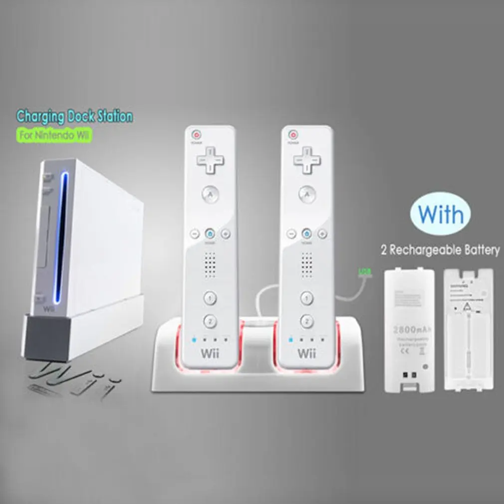 Особенности: заряжает два пульта Wii одновременно включает в себя два быстрозаряжаемых аккумулятора 2800 мАч Ni-MH, которые подходят для вашего пульта Wii через порт USB на задней части Wii или от компьютера светодиодный индикатор зарядки светильник светится красным для зарядки или синий для Полностью заряженных спецификаций: входное напряжение: 5 В постоянного тока Выходное напряжение: DC 2,8 V квт×2 Выход ток: 350mA min×2 Батарея: 2 шт. 2800 мА/ч, никель-металл-гидридных аккумуляторных батарей Размеры из док-станции: 13 × 6 × 3,7 см (Д × Ш) Вес из док-станции: 84 г Вес из Батарея: 40 г × 2 Посылка Размеры: 13,6 × 9,8 × 4,5 см (Д × Ш) посылка Вес: 214g Цвета в наличии: белый, черный, посылка включает в себя: 1 × 2 Ni-MH аккумуляторные батареи 1 × usb-кабель для зарядки 1 × Двойной пульт дистанционного управления для зарядки Док-станция