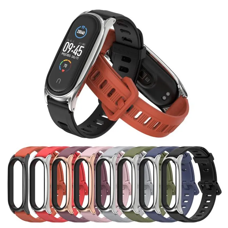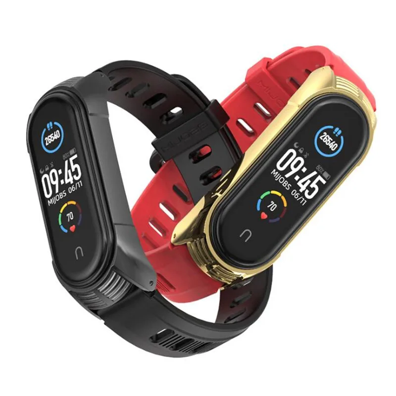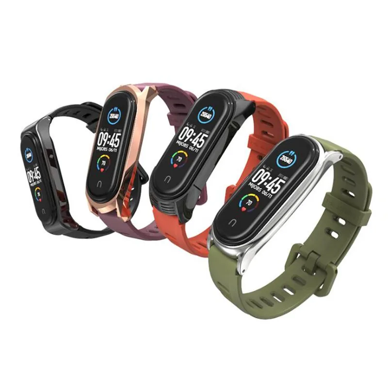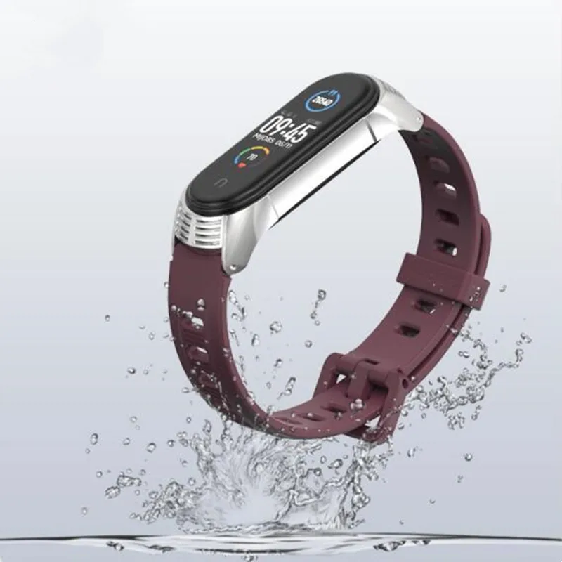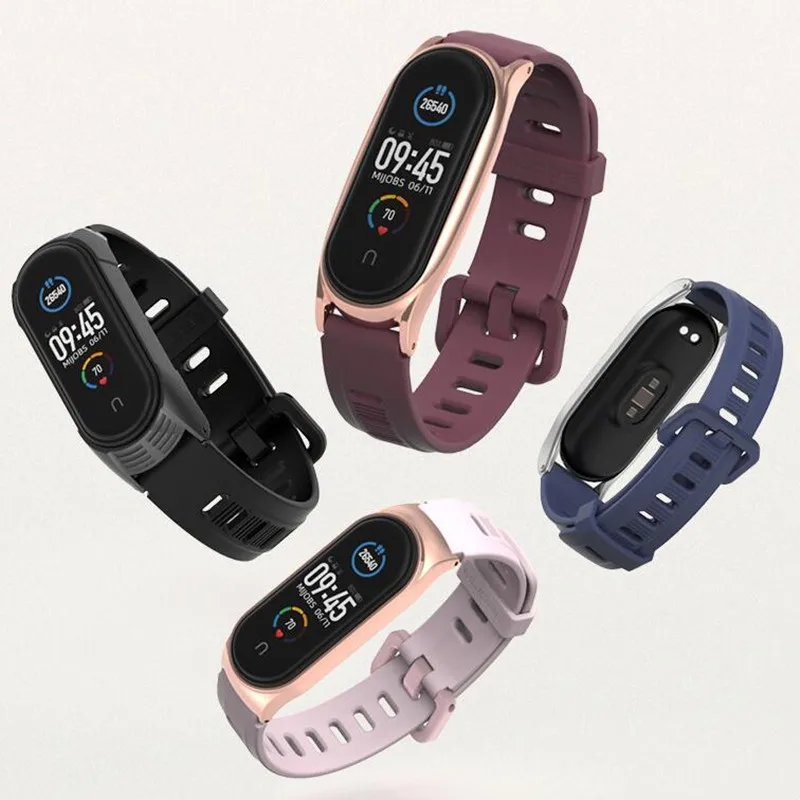 Браслет из нержавеющей стали для Xiaomi Mi Band 5 4 3 6, розовое зо...
