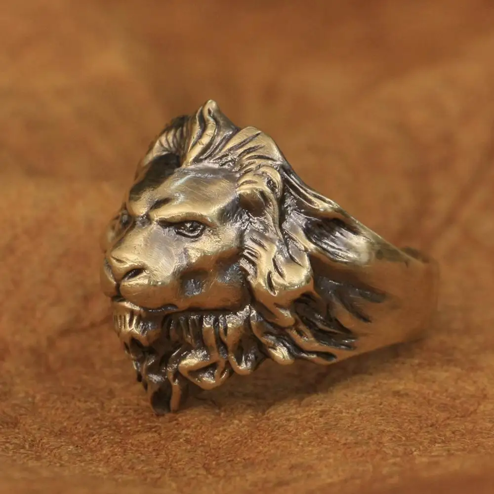 LINSION латунное кольцо король льва мужское байкерское панк кольцо BR109 США Размер 7 15