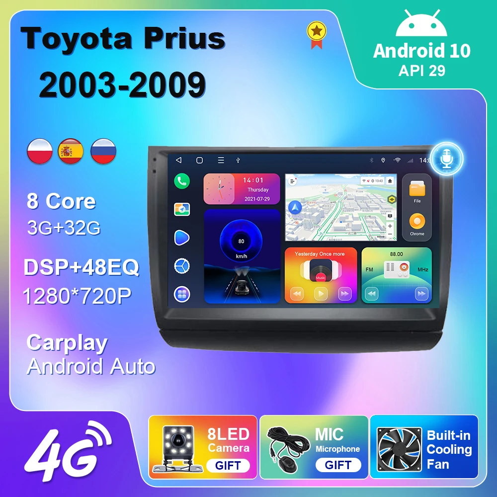 Автомобильное радио, GPS-навигатор, мультимедиа 2 din, 4G, Wi-Fi, dvd-плеер для Toyota Prius 20 2003-2009