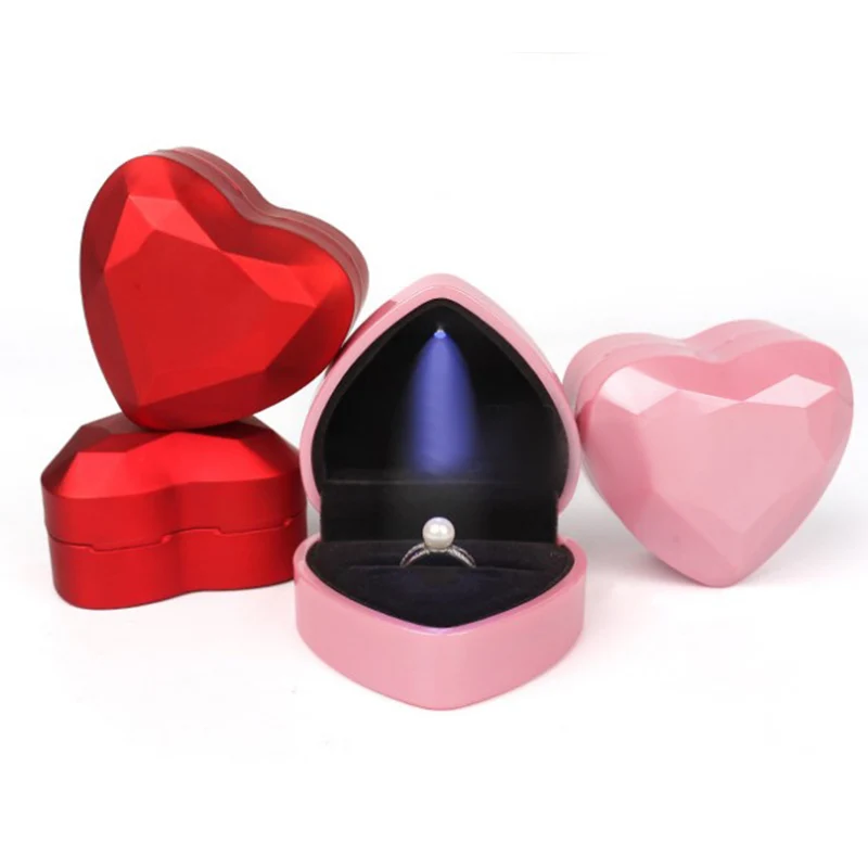 Роскошная коробка со светодиодной подсветкой в форме сердца для свадебных колец с дисплеем для хранения колец, коробка для украшений, подвесная сумка, подарок на день рождения, 1 шт.