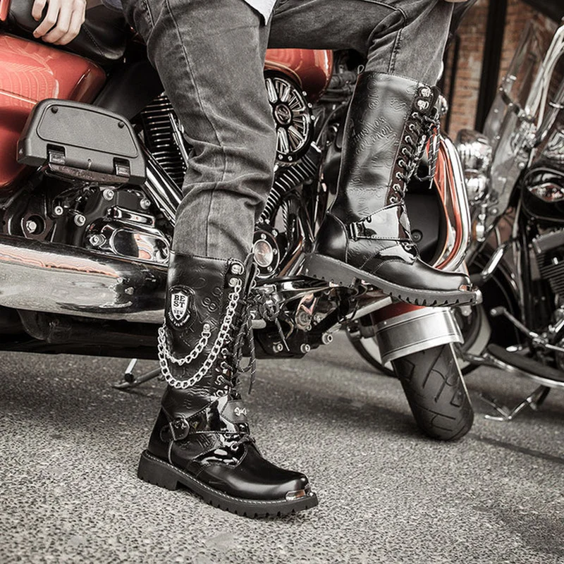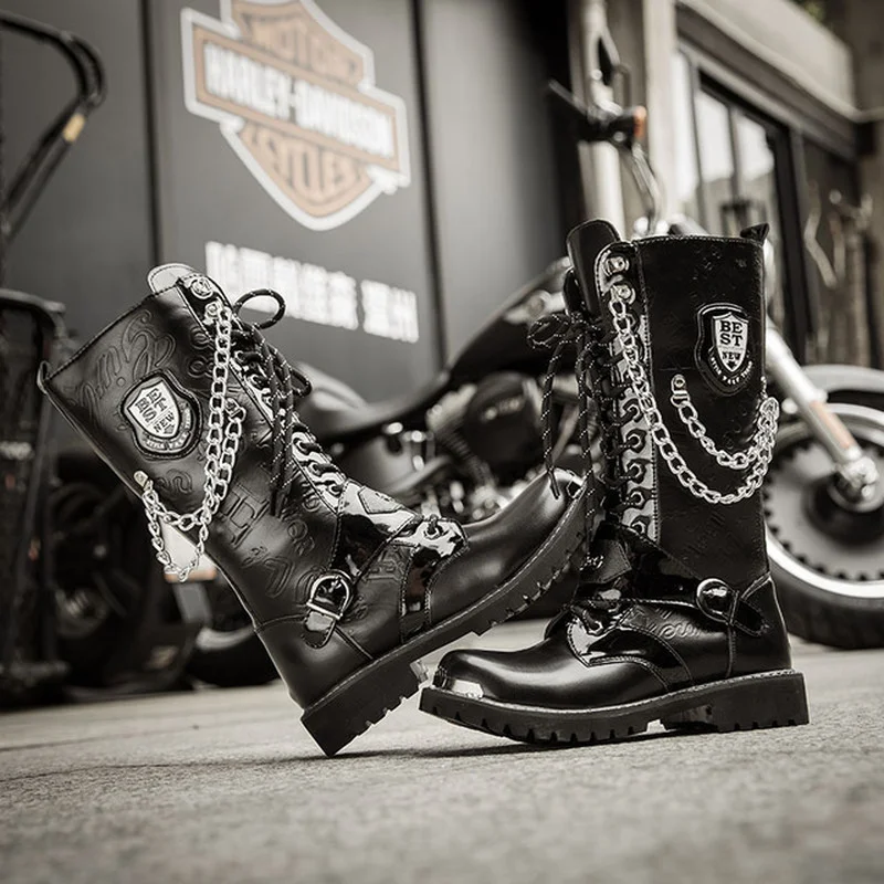 Мужские мотоциклетные ботинки до середины икры, серые боевые ботинки в стиле милитари, готический стиль, с ремешком, повседневная обувь в стиле панк, 2019