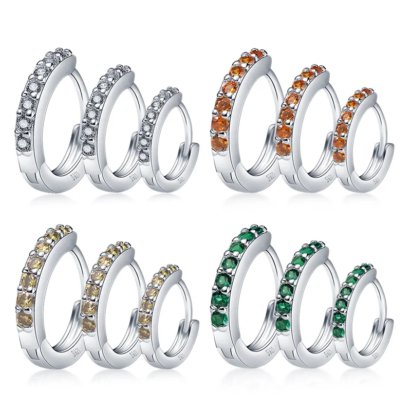 Женские серьги-кольца из серебра 925 пробы, 4 цвета, 3 размера