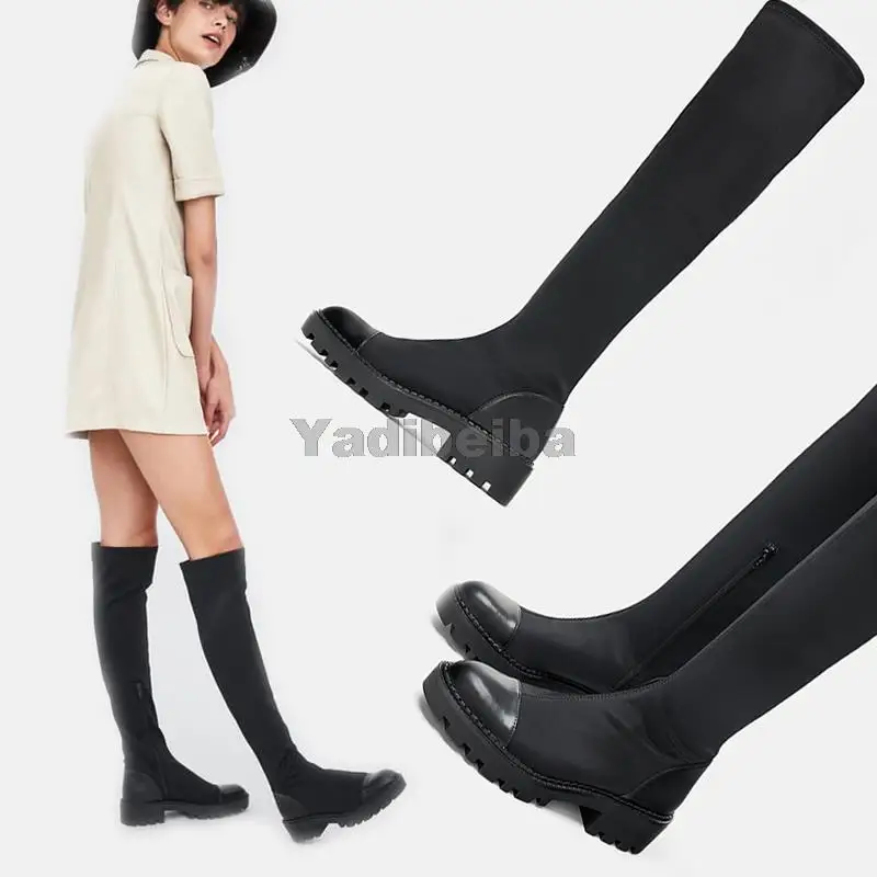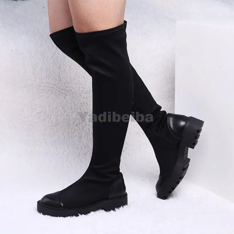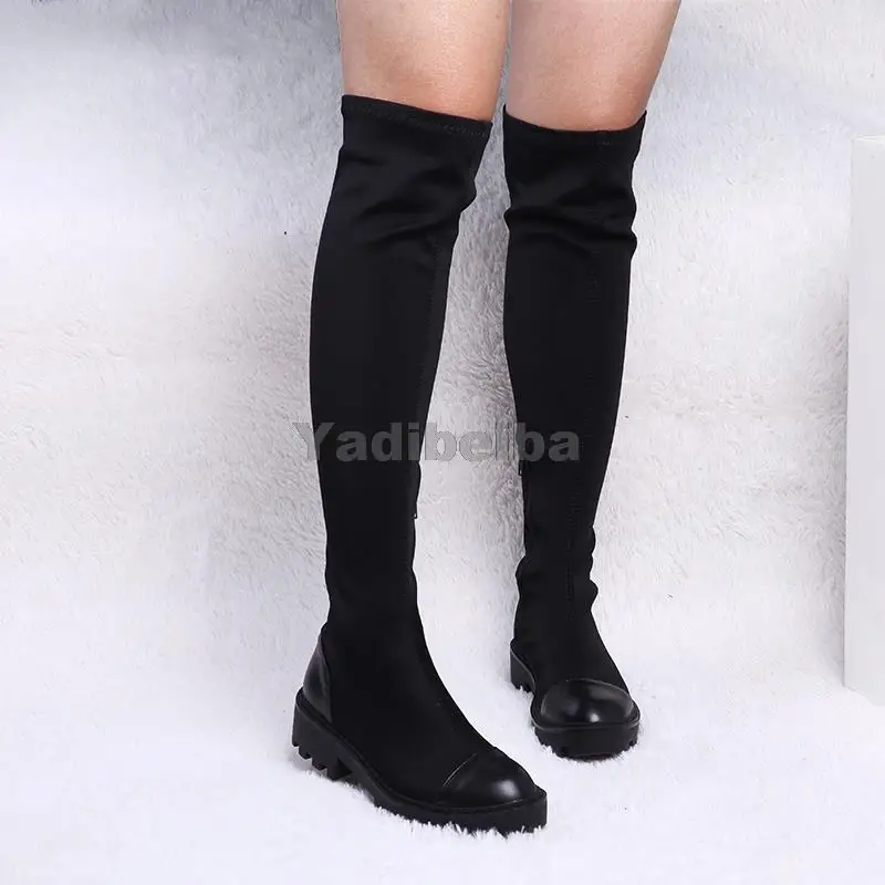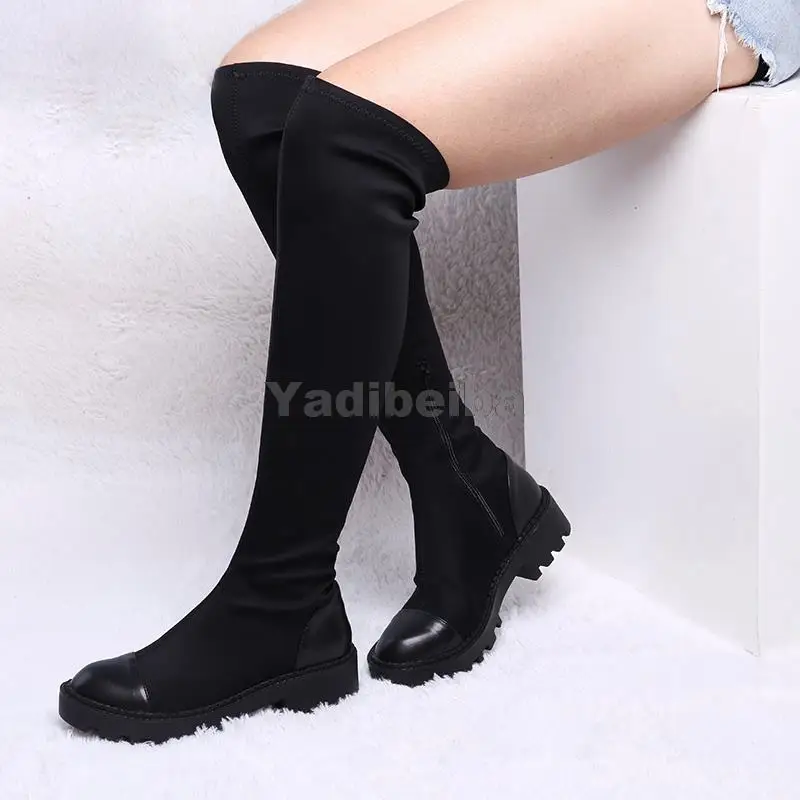 Женские сапоги выше колена, облегающие сапоги из эластичной ткани, на платформе, на каблуке, большие размеры 40, для зимы, 2021