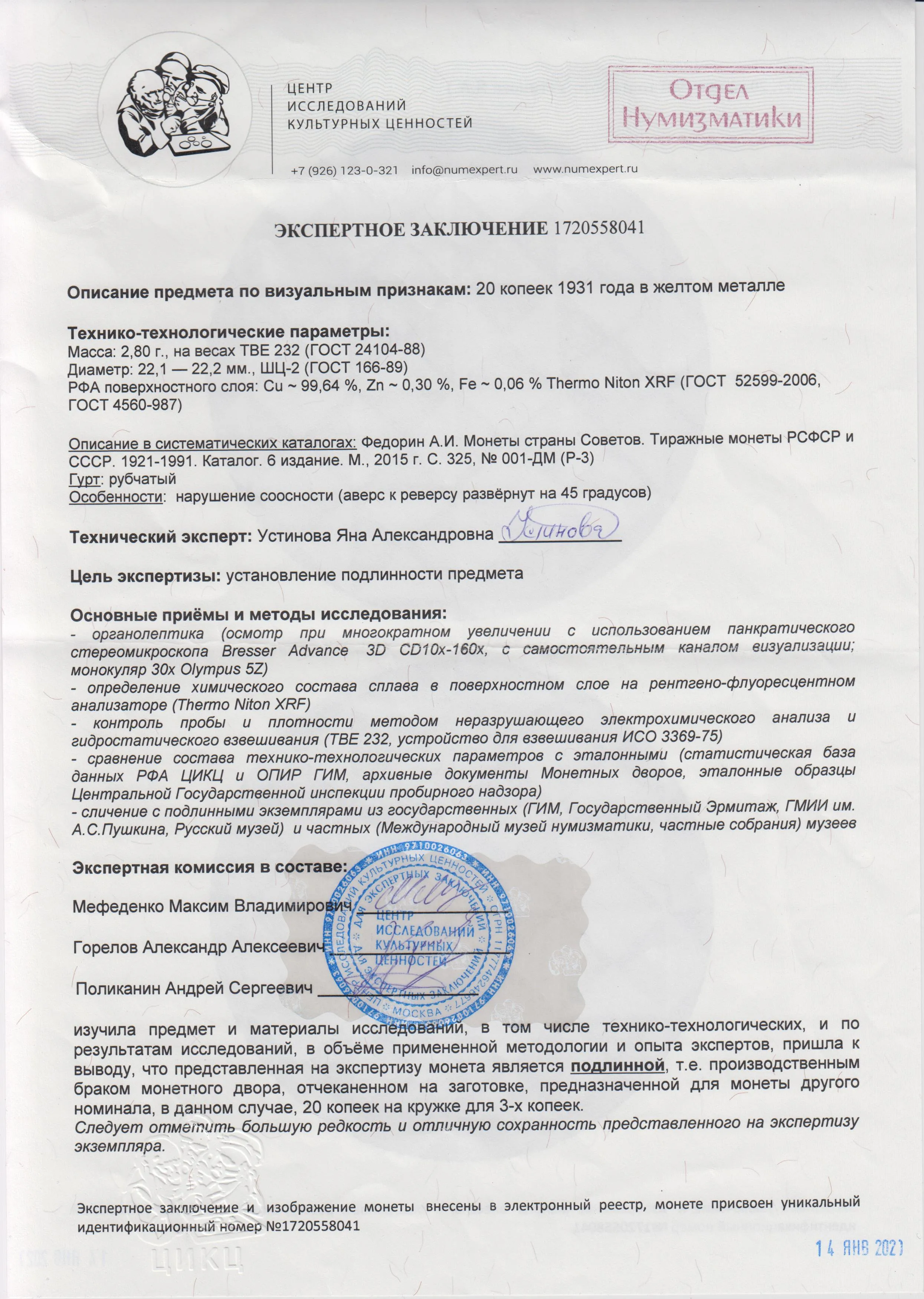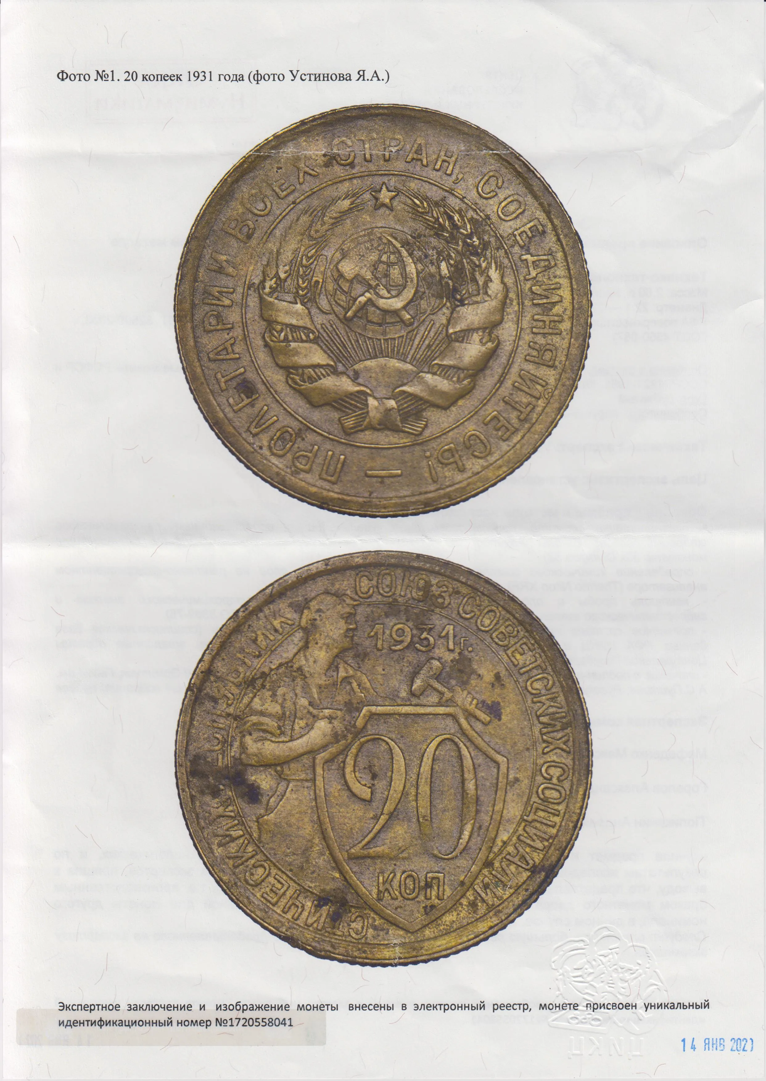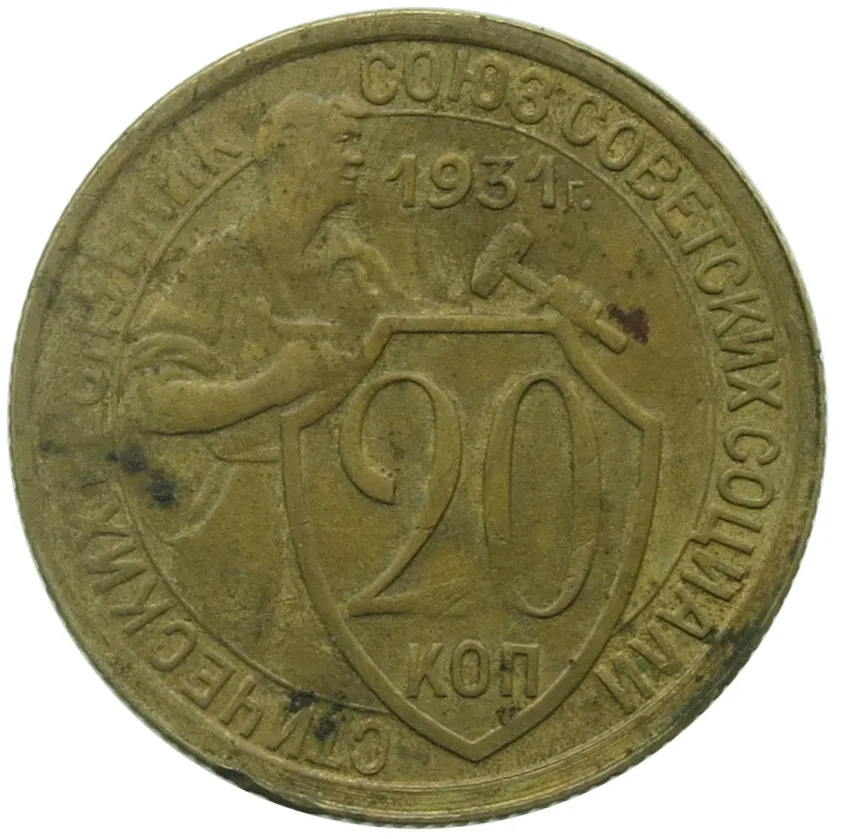 ✅ При покупке этого товара Вы получите монету изображенную на фото.20 копеек 1931 года перепутка по металлу. Выполнена на заготовке предназначенной для 3х копеечной монеты. Так же на монете присутствует производственный брак - поворот штемпеля примерно на 90 градусов.Монета выполнена из алюминиевой бронзы, с обеих сторон присутствует кант. Аверс монеты состоит из изображения герба Союза Советских Социалистических Республик (СССР), надписи "Пролетарии всех стран, соединяйтесь!" и шестью витками лент, плюс одна общая, снизу по центру. На реверсе изображён год выпуска, рабочий с молотком, держащий щит, на котором нанесён номинал монеты. По кругу нанесена надпись - Союз Советских Социалистических Республик Основные детали: Оригинальная монета Реальное фото Выпущена в 1931 году СССР