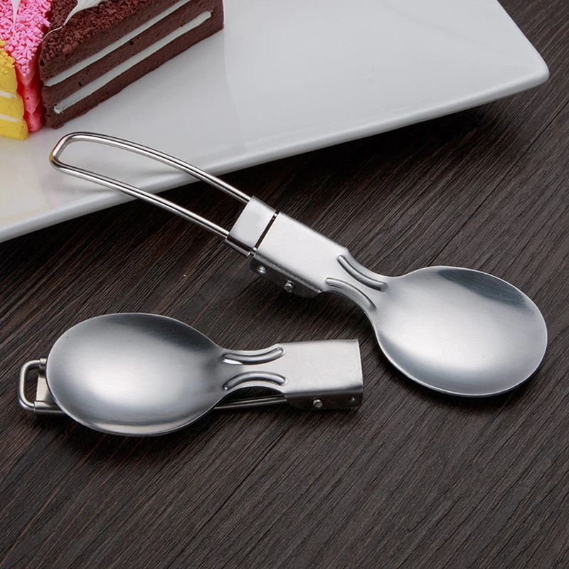 Ложка из нержавеющей стали для кемпинга и пикника, столовая посуда из титана, складная Ложка для кемпинга, портативное оборудование для кемпинга