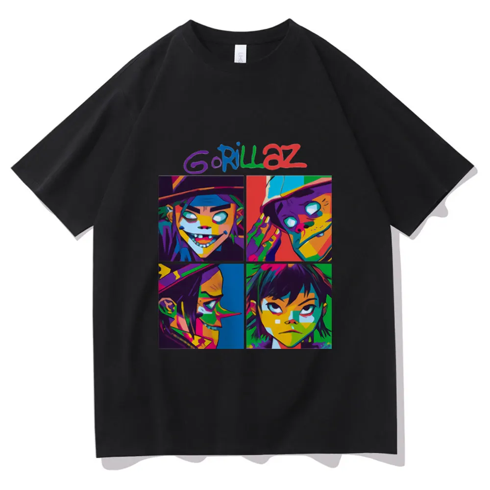 Футболка мужская, женская, с рисунком в виде музыкальной группы Gorillaz, летняя, черная, трендовая, большого размера, европейские размеры