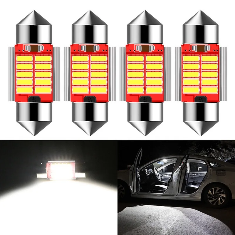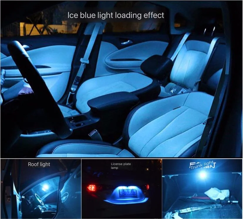 Посылка включает:3 x светодиодный светильник для переднего купола и карты3 x светодиодный светильник заднего купола и картыСветодиодный зеркальный светильник 2 шт.1 х светодиодный светильник для багажника1 х светодиодный светильник для перчатокСветодиодный светильник Footwells (2 шт.)2 x светодиодный запасной светильник
