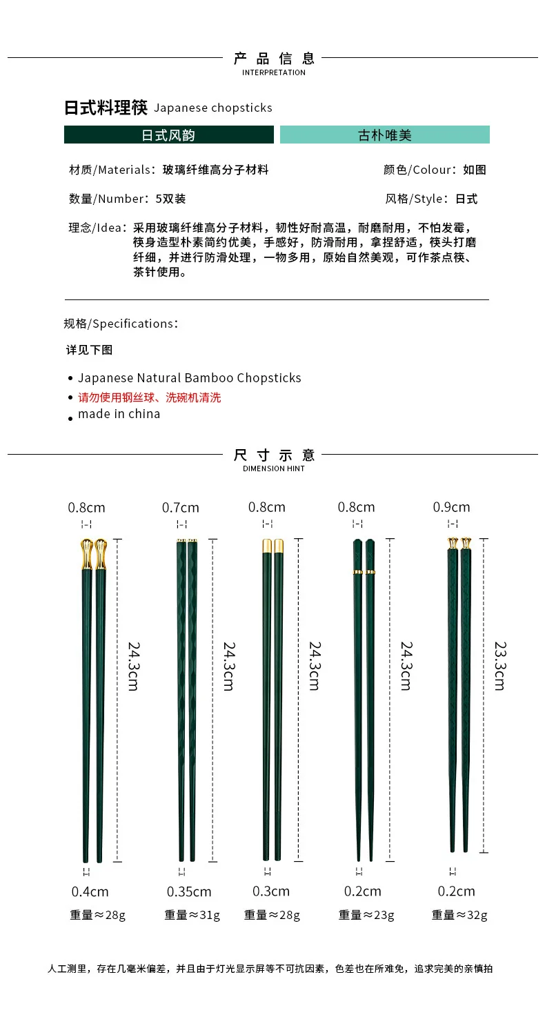 Палочки для еды, 5 парыкомпл., японские, Нескользящие, портативные,...