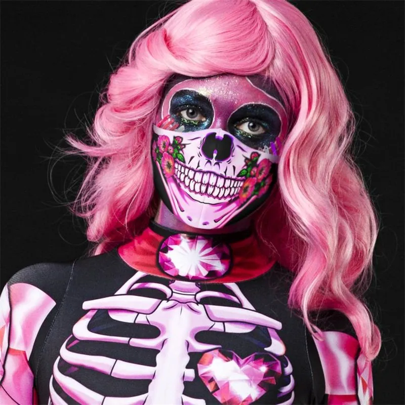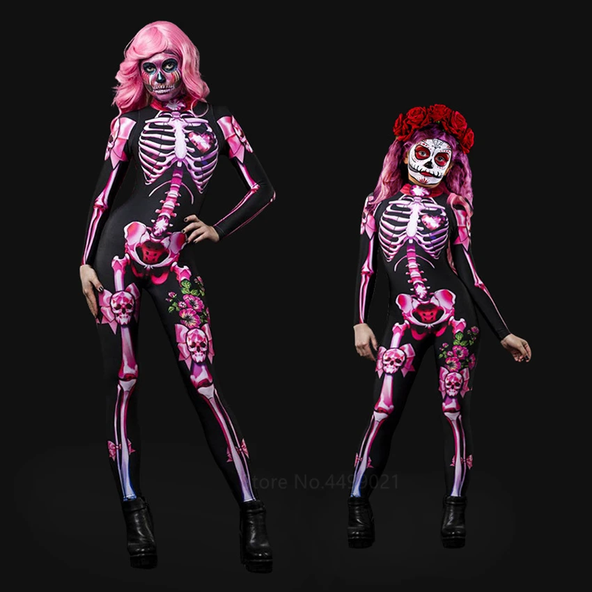 Женский комбинезон для косплея, розовый комбинезон с 3D-принтом черепа, розы на Хэллоуин, новая модель 2022 года