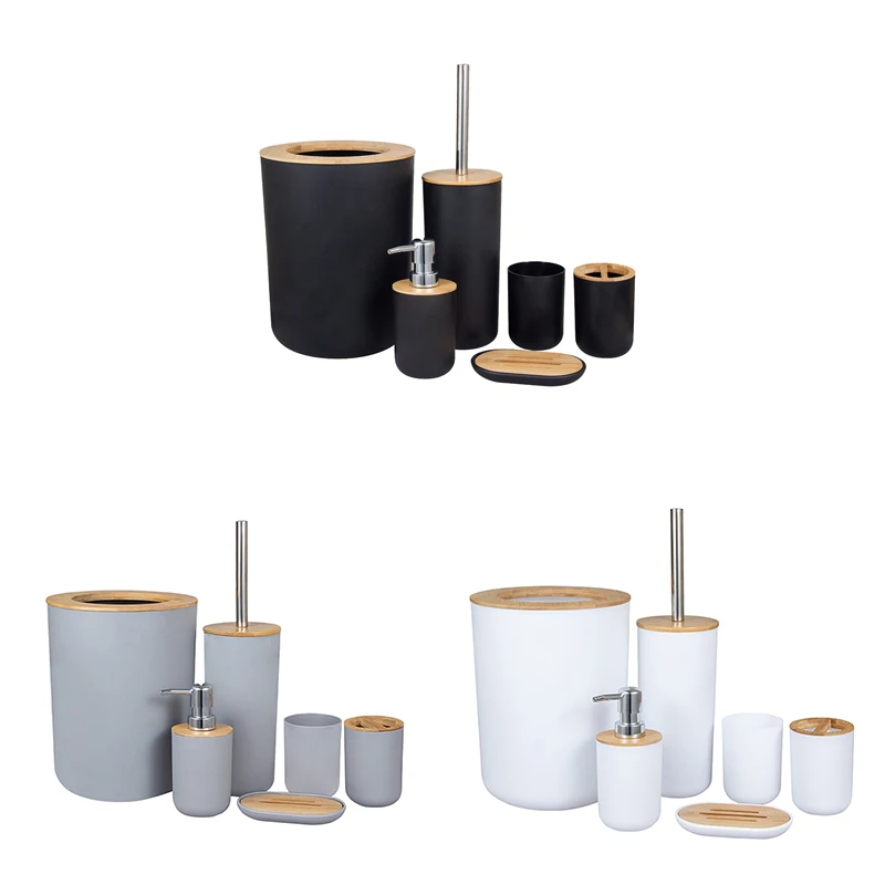 Бамбуковое мусорное ведро для ванной из шести предметов, туалетная ...