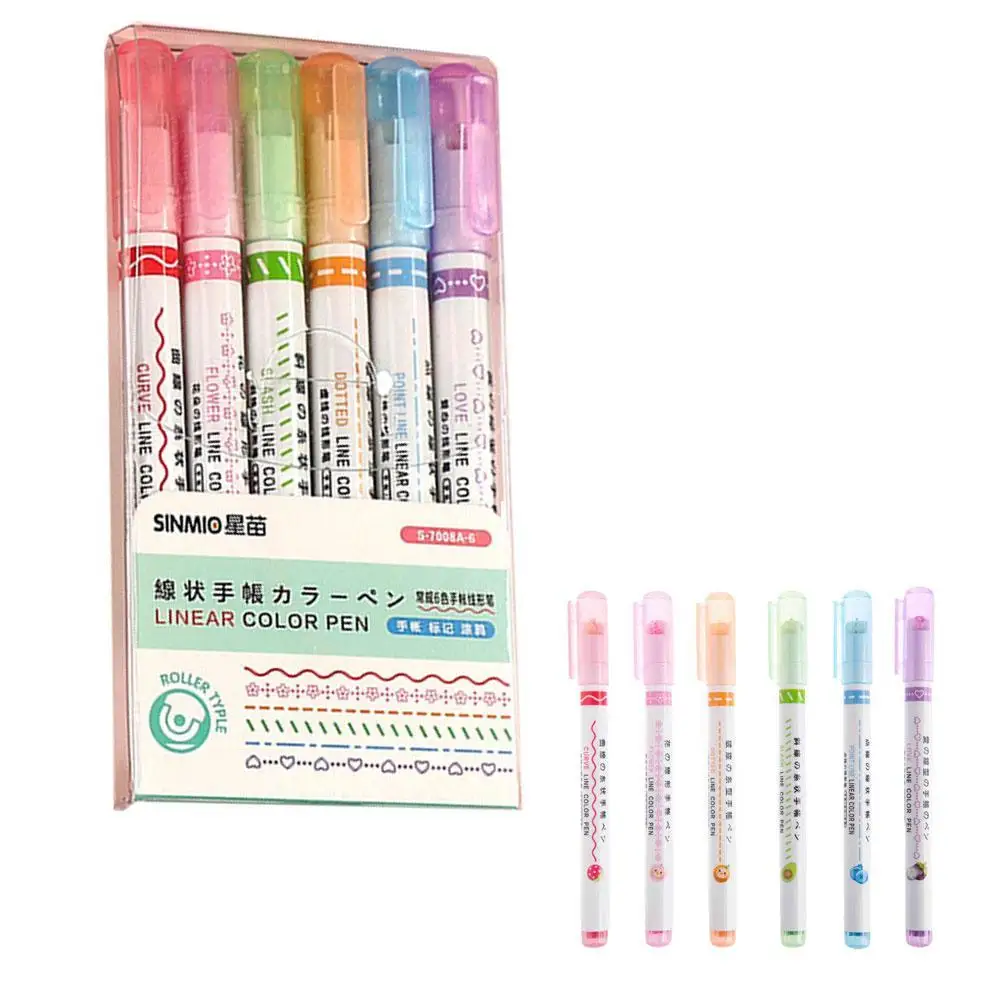 Маркеры ручные, 6 шт.компл., цветные, кривые, милый узор, линия в ф...