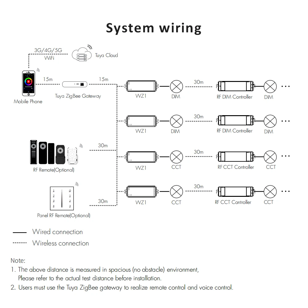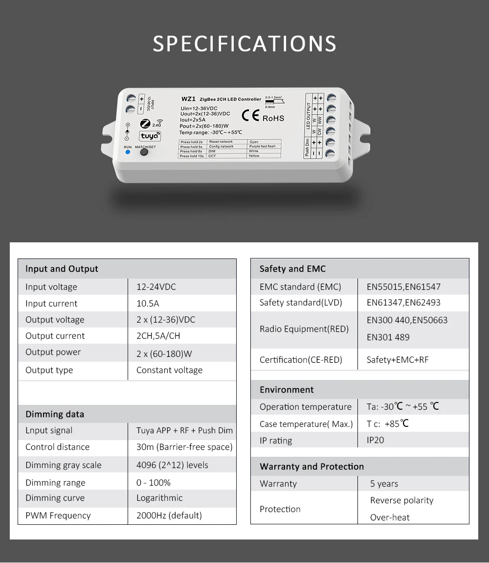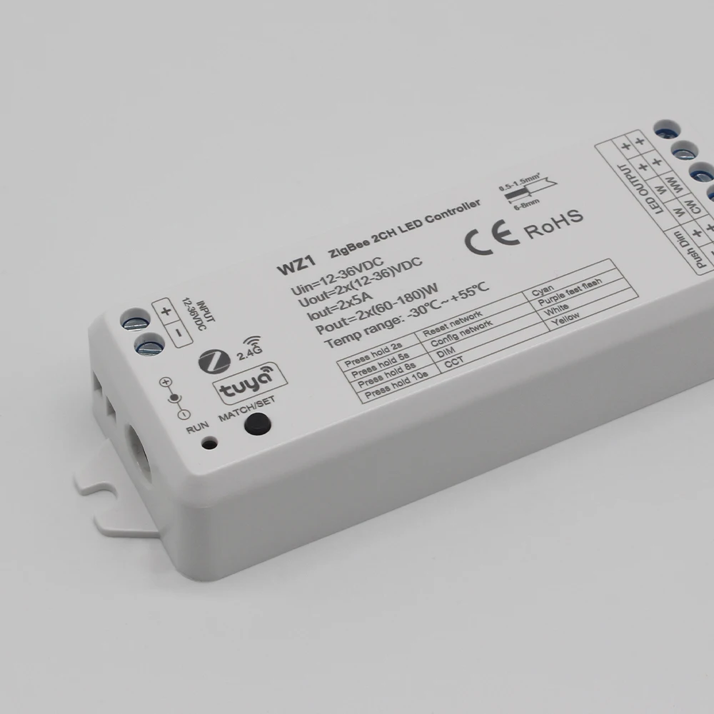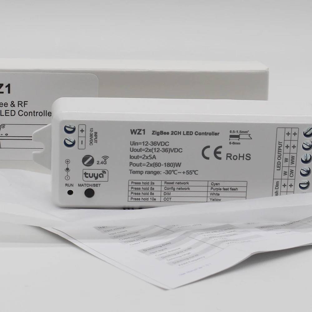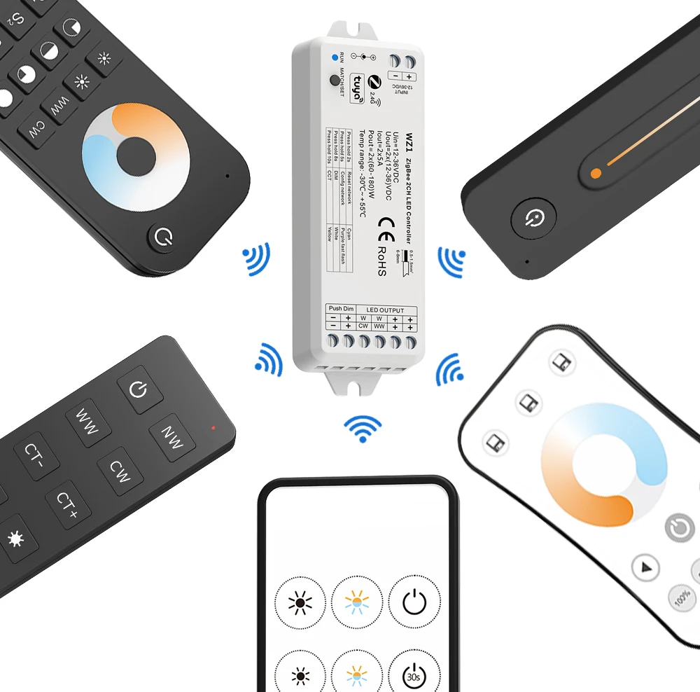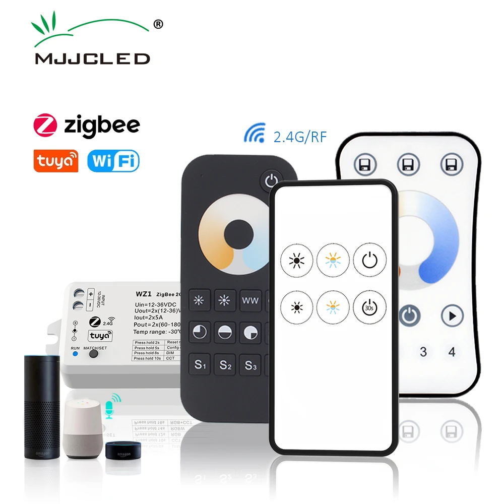 Умный переключатель Zigbee с регулятором яркости, 12 В, 24 В, 36 В постоянного тока, 2 канала, 10 А, 2,4 ГГц, RF, Wi-Fi, беспроводной пульт дистанционного управления для одноцветной ленты CCT WZ1