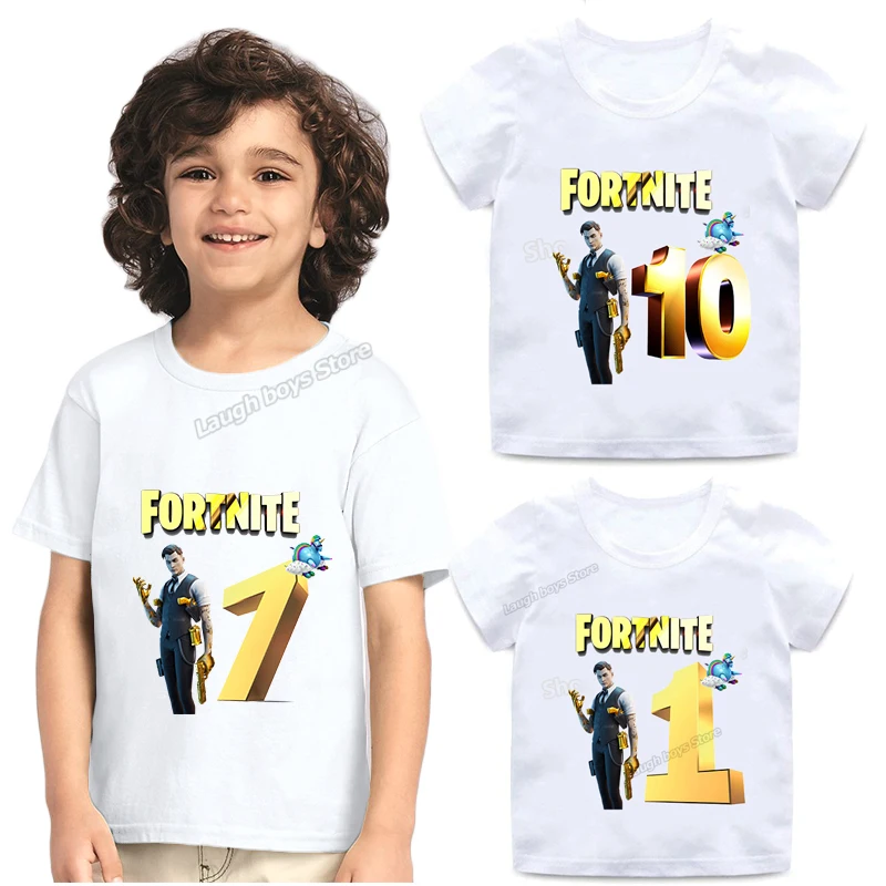 Детские футболки Fortnite с мультипликационным рисунком, детская одежда с принтом крепости, одежда для мальчиков, цифровая графическая футболка на день рождения