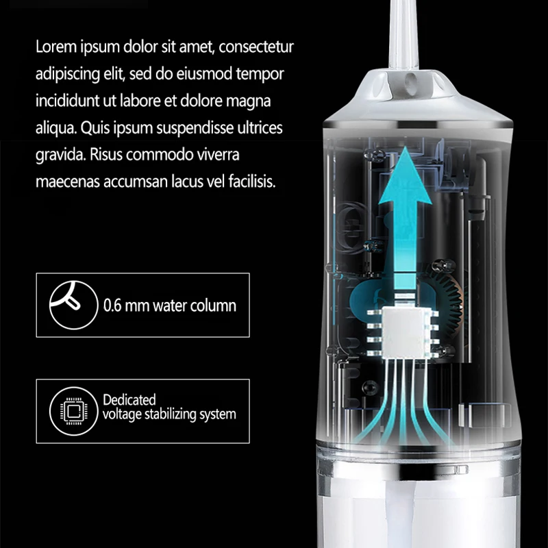 1. Точно очистите зазор между зубами и легко удалите бактерии и остатки пищи между зубами и деснами 2. Удобный и съемный дизайн резервуара для воды позволяет вовремя очистить грязь в резервуаре для воды, что делает очистку зубов более гигиеничной Вращающееся на 3,360 ° сопло может обеспечить многонаправленную очистку полости рта.