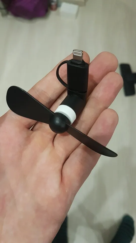 К сожалению, я не просмотрел внимательно и не увидел, что вентилятор имеет старый разъем, но у меня есть type-C. Но он хорошо работает на моем старом телефоне. Дыхание достаточно, чтобы охладить лицо и лоб во время нагрева.