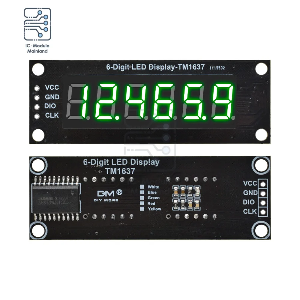 TM1637 0,56 дюймов 6-значный цифровой 7 сегментов цифровые часы-трубка модуль двойной точки синий цвет: желтый, белый зеленый красный светодиодный Дисплей
