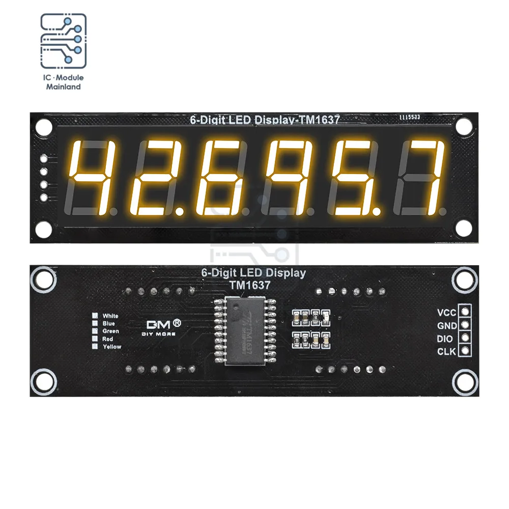 1 шт. x TM1637 0,56 дюймов желтый 6-значный цифровой трубчатый модуль