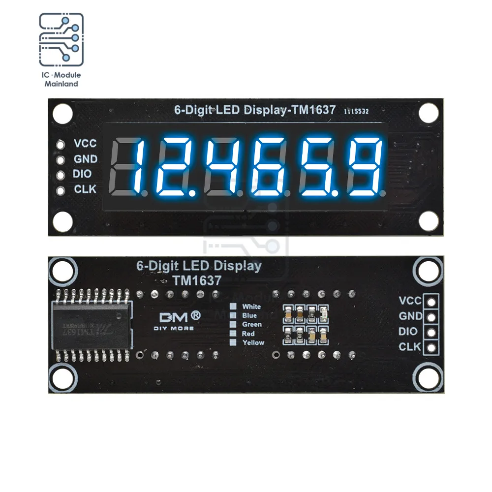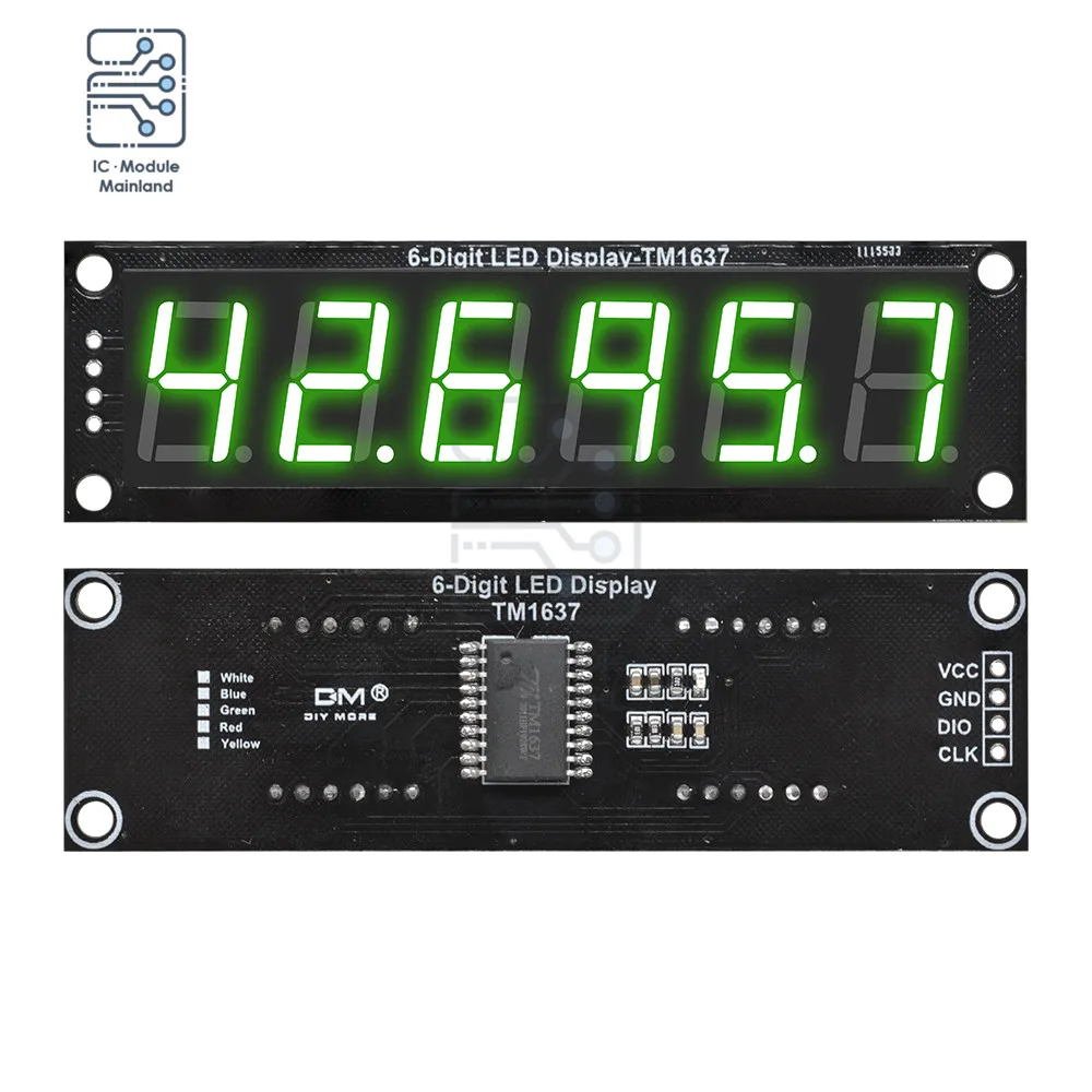 Это является одним из основных 6-значный цифровой дисплейный модуль. На дисплее отображается каждая Десятичная точка. Модуль подключается к цифровому I/O через 2 контакта.