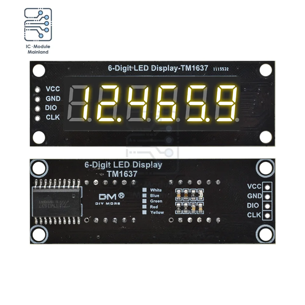 1x0,36 дюймов 6-значный цифровой светодиодный дисплей труба на солнечных батареях (десятичная система) 7-сегментный желтый TM1637
