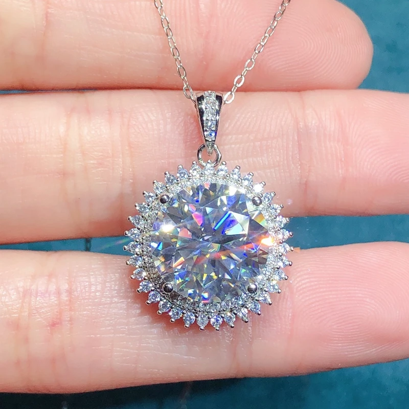 Ожерелье драгоценный камень: 6 карат 12 мм моиссанит (прошел тест сверла + GRA сертификат)