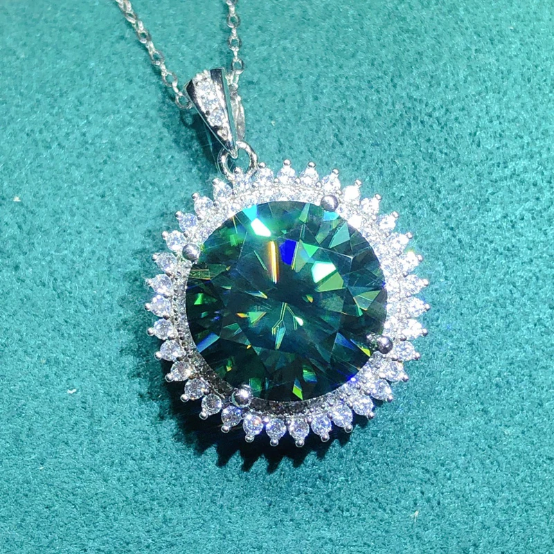 Серебряное ожерелье с муассанитом зеленого цвета, 5 ct11 мм