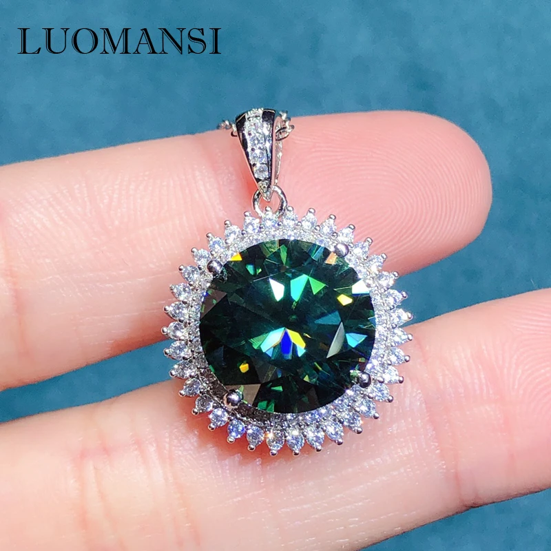 Ожерелье Luomansi из натурального муассанита белого и зеленого цвета, 12 мм, 6 карат, прошло испытание на бриллиант, серебро пробы, Женские Ювелирные украшения для свадебной вечеринки