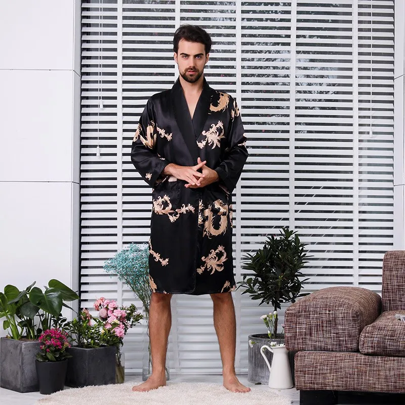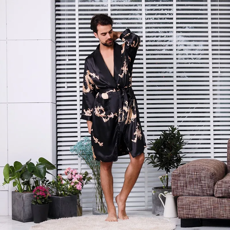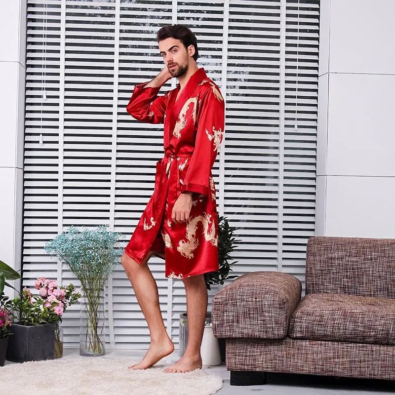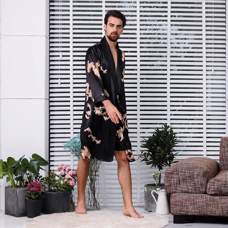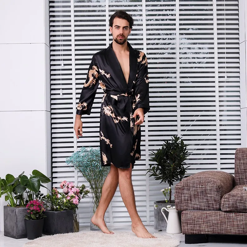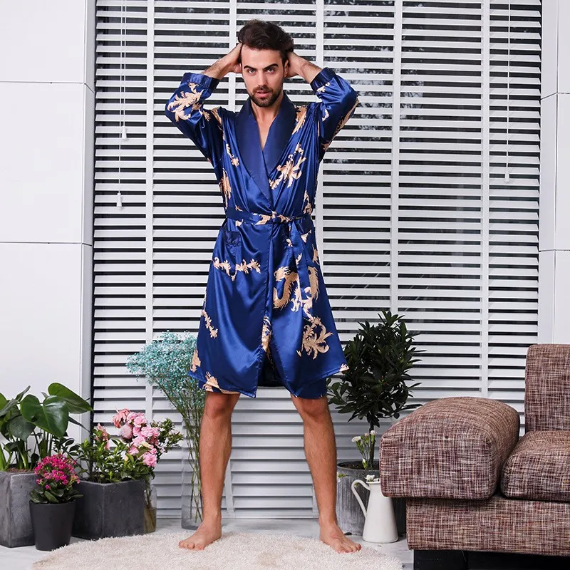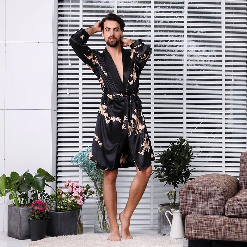 Халат Мужской Атласный с длинным рукавом, шелковый халат, шорты, роскошная одежда для сна, домашняя одежда, 7XL