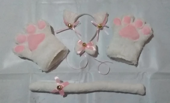 Женский костюм горничной для косплея, плюшевый ошейник с бантом и колокольчиком, Рукавицы-лапы