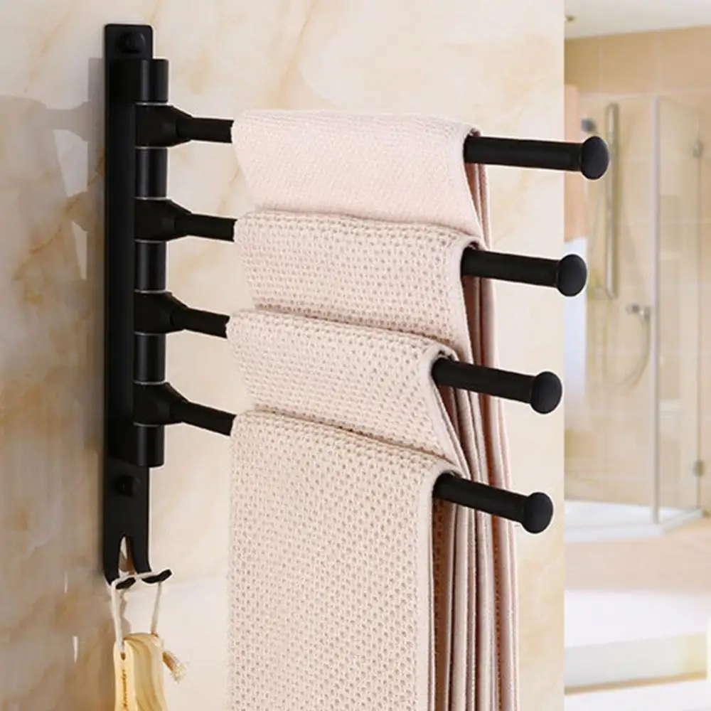 Вращающийся 4-уровневый настенный держатель для стеллажа, держатель для хранения, крючок для хранения, без отверстий, аксессуары для ванной комнаты