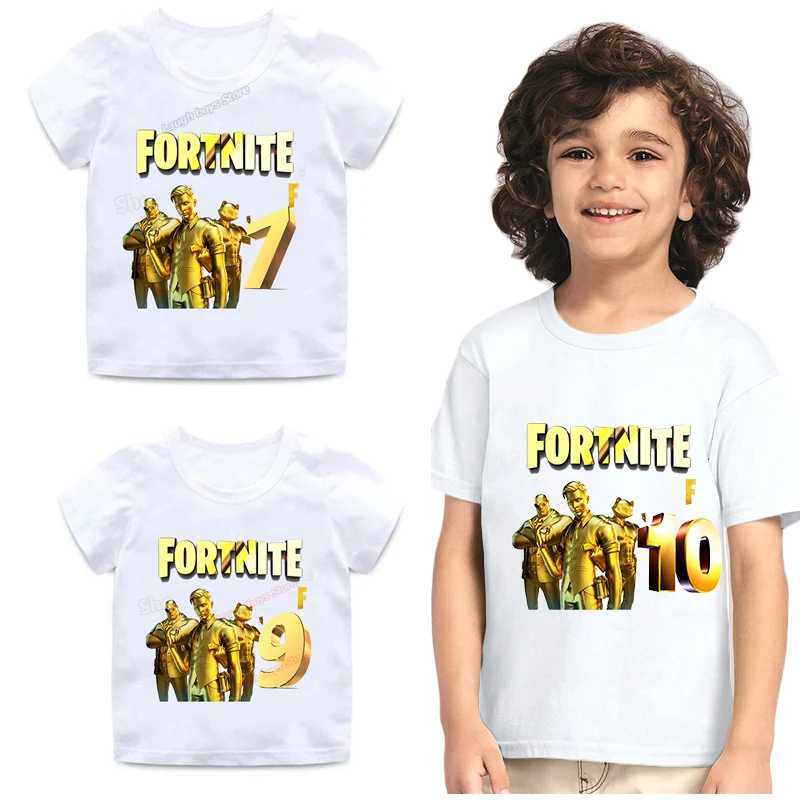 Детские футболки на день рождения, рубашка для мальчиков Fortnites,...