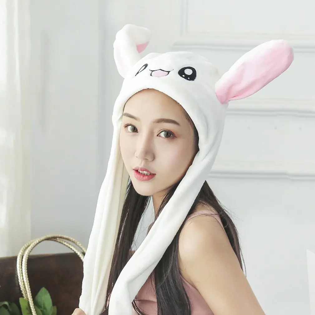 Новинка 2021, женская шапка с заячьими ушками, шапка с подвижными ушками кролика из плюша, шапка с подвижными ушками для женщиндетейдевочек