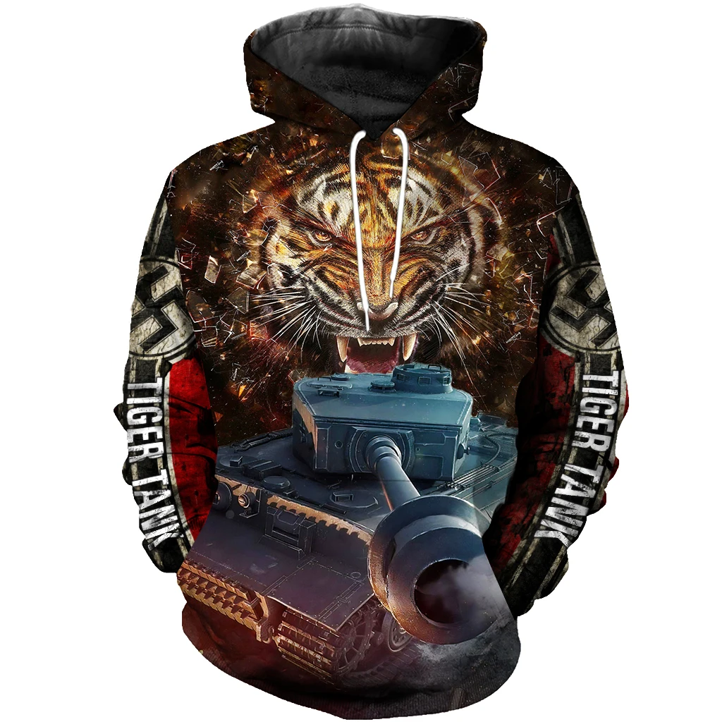Мужская повседневная толстовка с капюшоном и принтом тигра