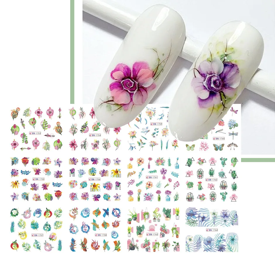 12 шт. в упаковке, для весны и лета наклейки для ногтей акварель не...