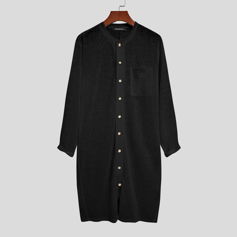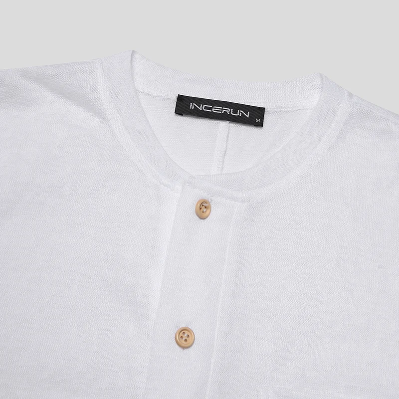 Комбинезон INCERUN мужской однотонный, комбинезон с круглым вырезом и длинным рукавом, комбинезон на пуговицах, уютная дышащая тонкая ночная рубашка
