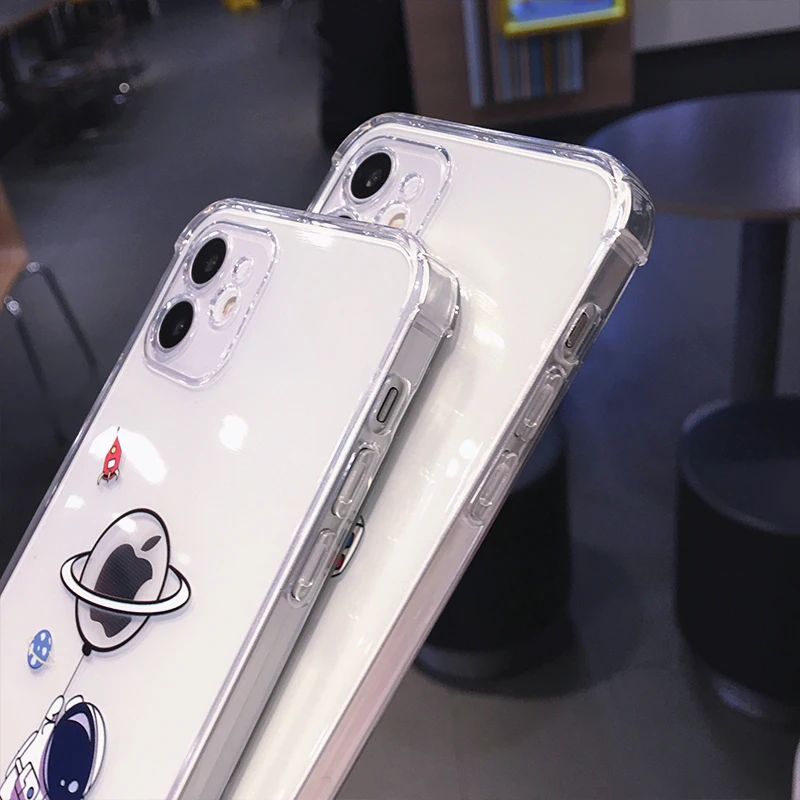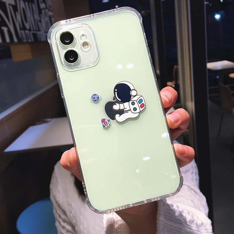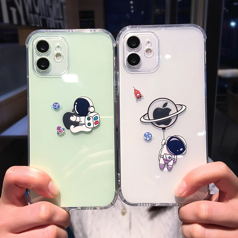 Милый чехол для телефона с мультяшным астронавтом для iPhone 11 Pro MAX XS XR X 12 Mini 7 8 Plus, прозрачный мягкий противоударный чехол из ТПУ
