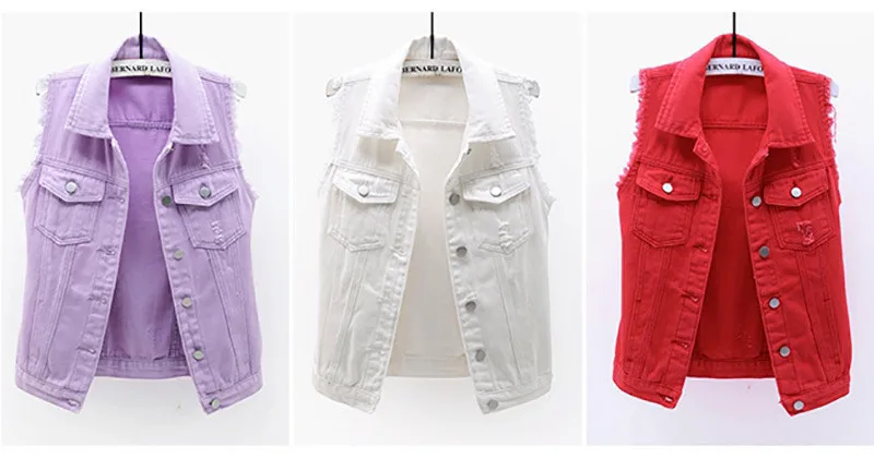 Женский джинсовый жилет без рукавов, повседневный Топ красного и си...