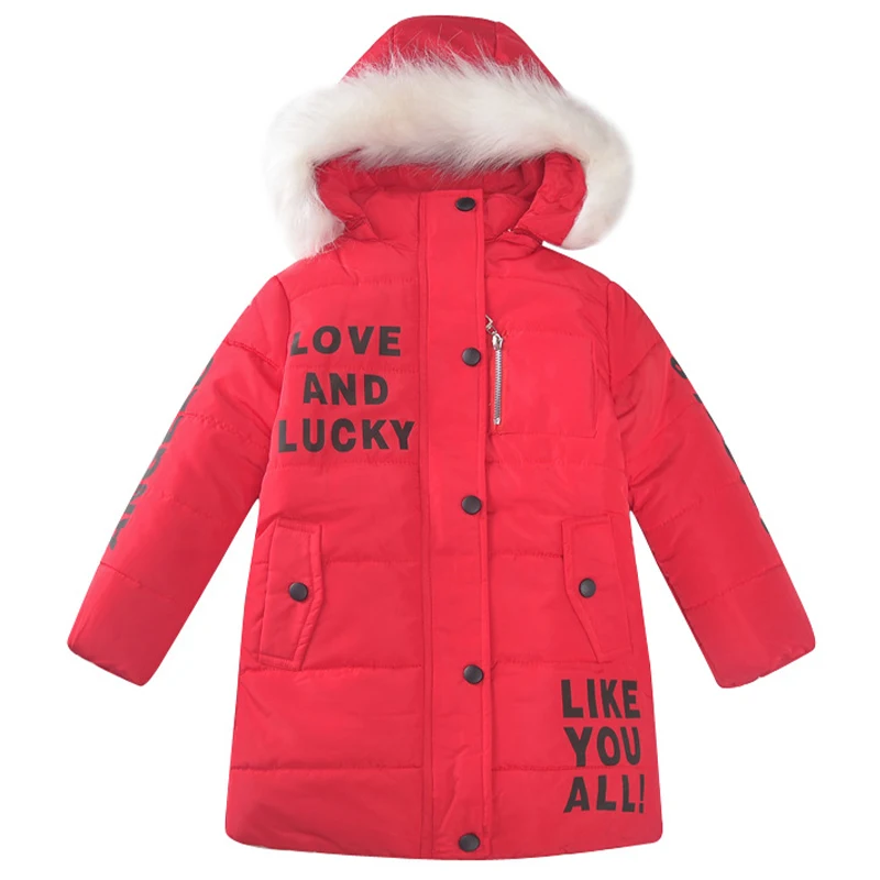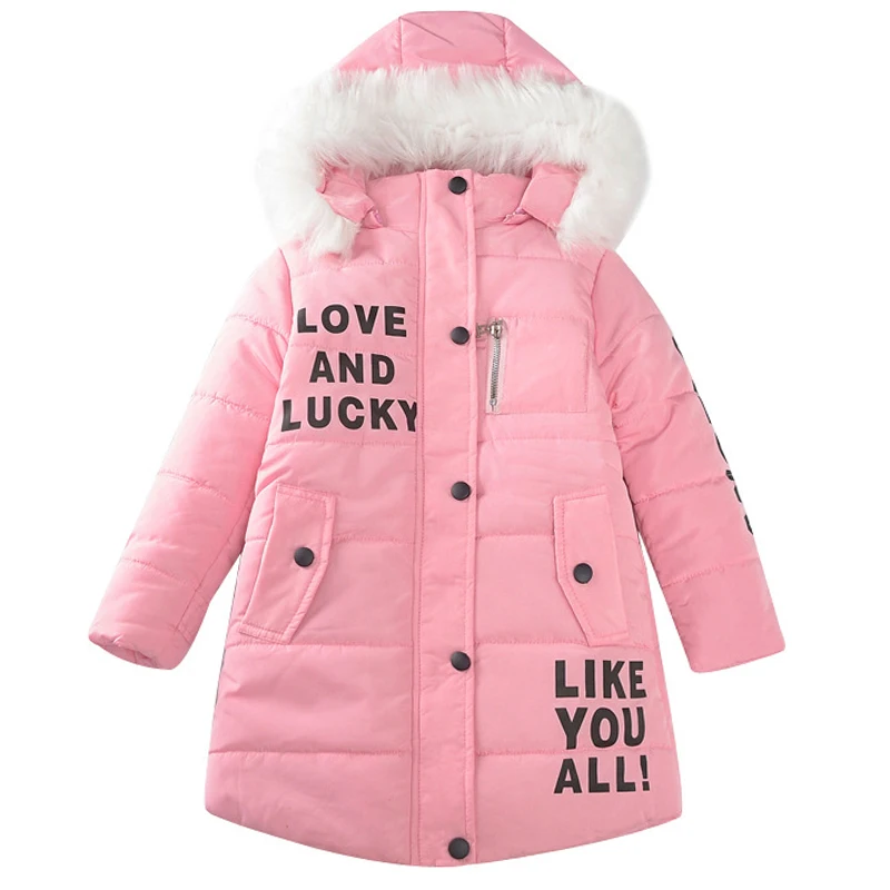 Куртки для девочек, зимние детские куртки, плотная теплая пуховая куртка, одежда с хлопковой подкладкой, модная куртка средней длины с надписью для девочек