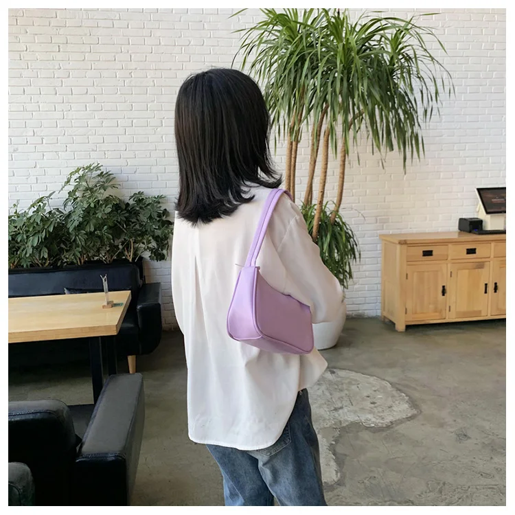 Новинка 2022, женская сумочка из мягкой искусственной кожи фиолетового цвета в стиле ретро, однотонные дамские сумочки, модный дизайн, маленькие сумки на плечо для девушек