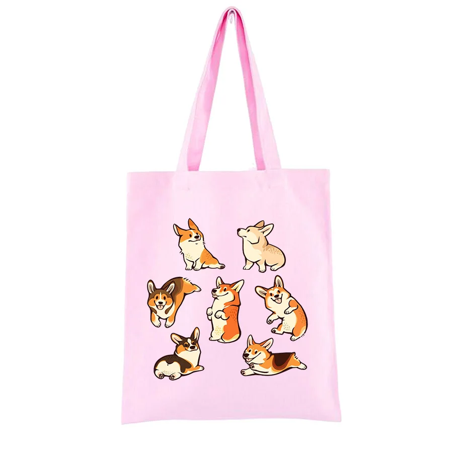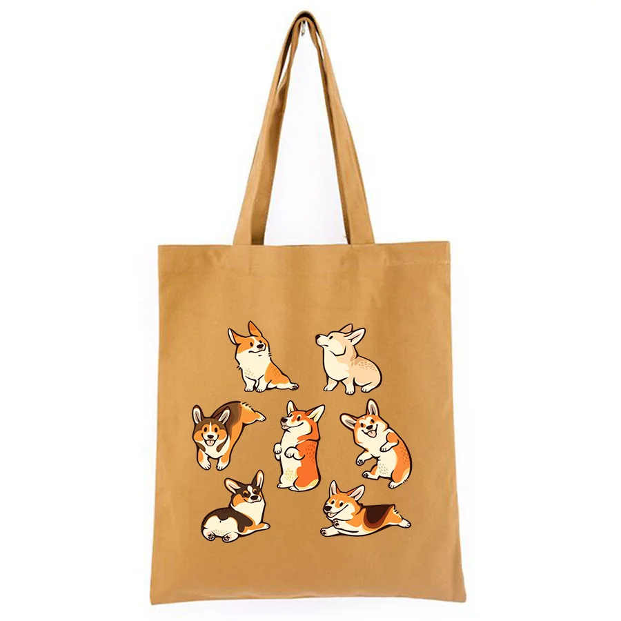 7 corgis Kawaii сумки на плечо корейские черные женские сумки из мультфильмов Холщовая Сумка-тоут сумка для покупок с молнией Модные Винтажные Сумки
