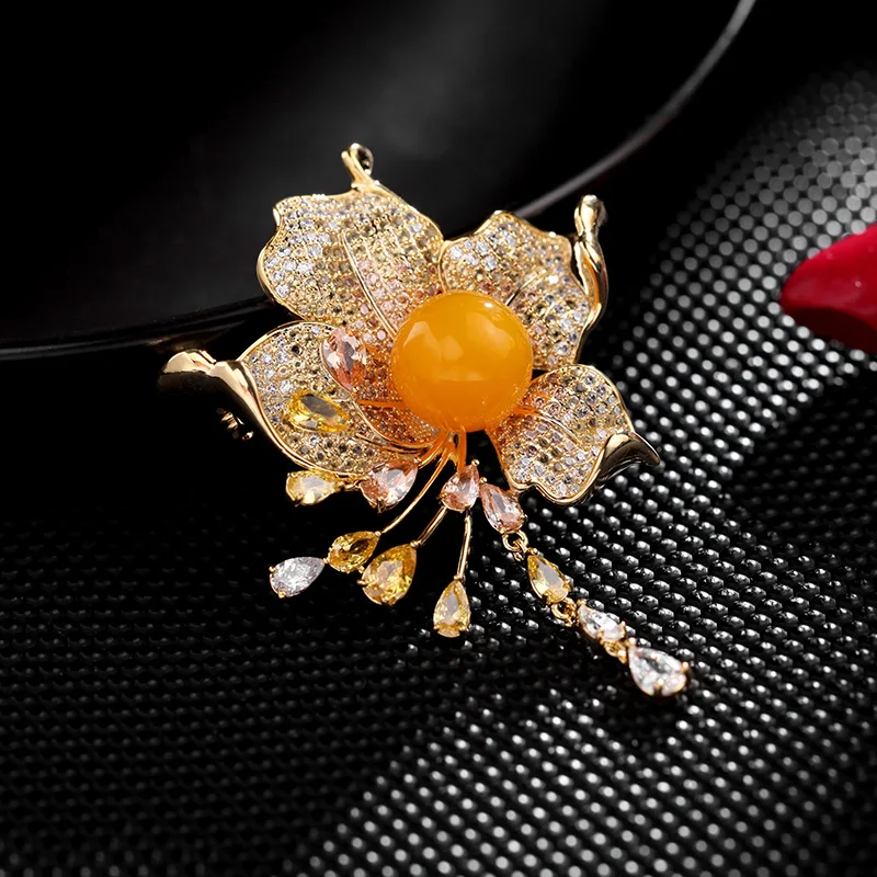 Блестящие броши в форме цветка с кристаллами для женщин, аксессуары для костюма, пальто, одежды, модная желтая брошь с кисточкой и кристаллами, подарки для женщин