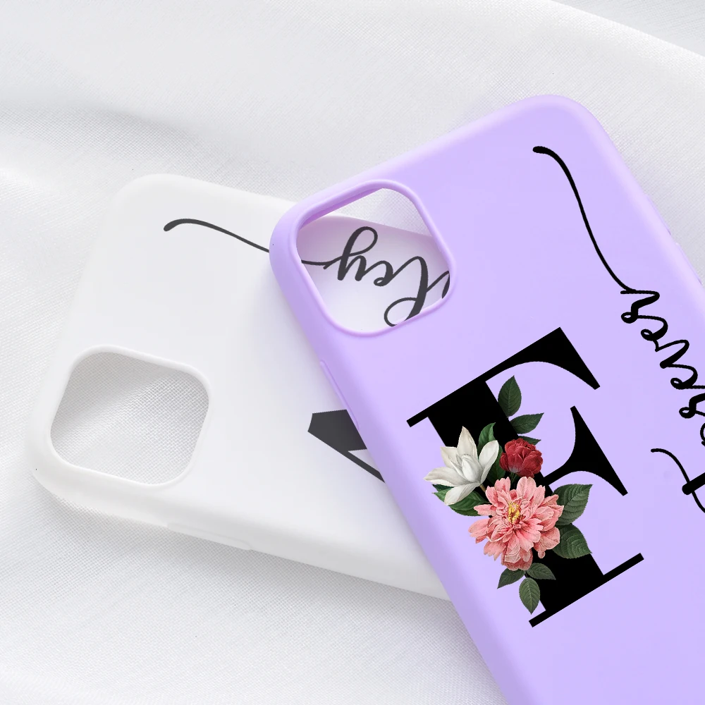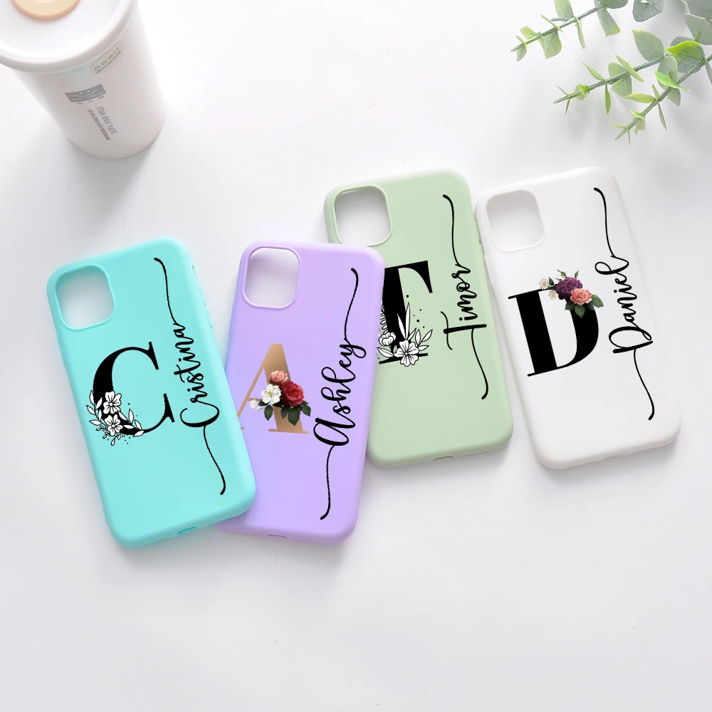 Новинка 2021, чехол для телефона с именем на заказ для iphone 11, 12 Pro Max, X, XS, XR, 7, 8 Plus, алфавит, цветок, конфетные цвета, силиконовый чехол, подарок для девочки