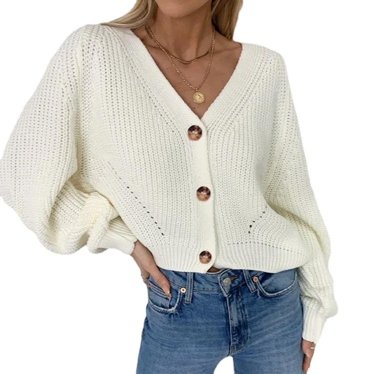 Женский однобортный Кардиган с V-образным вырезом и длинным рукавом
